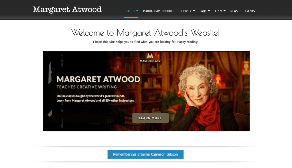 The award-winning author Margaret Atwood has extensive work product and experience that she showcases in her “branding” website, which is her very own professional portfolio. We’re not quite there yet. . .