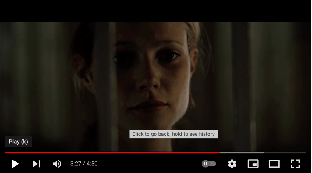 The filmmakers also invert the normal shot pattern in some of their eye-line matches. Viewers see what Mills’ wife sees—Mills, from behind, sitting on the couch, with crime scene photos splayed about him, and the TV on—before they see Mills’ wife (played by Gwyneth Paltrow) looking compassionately at her husband. Here we see what is “matched” before we even get the “eyeline.”