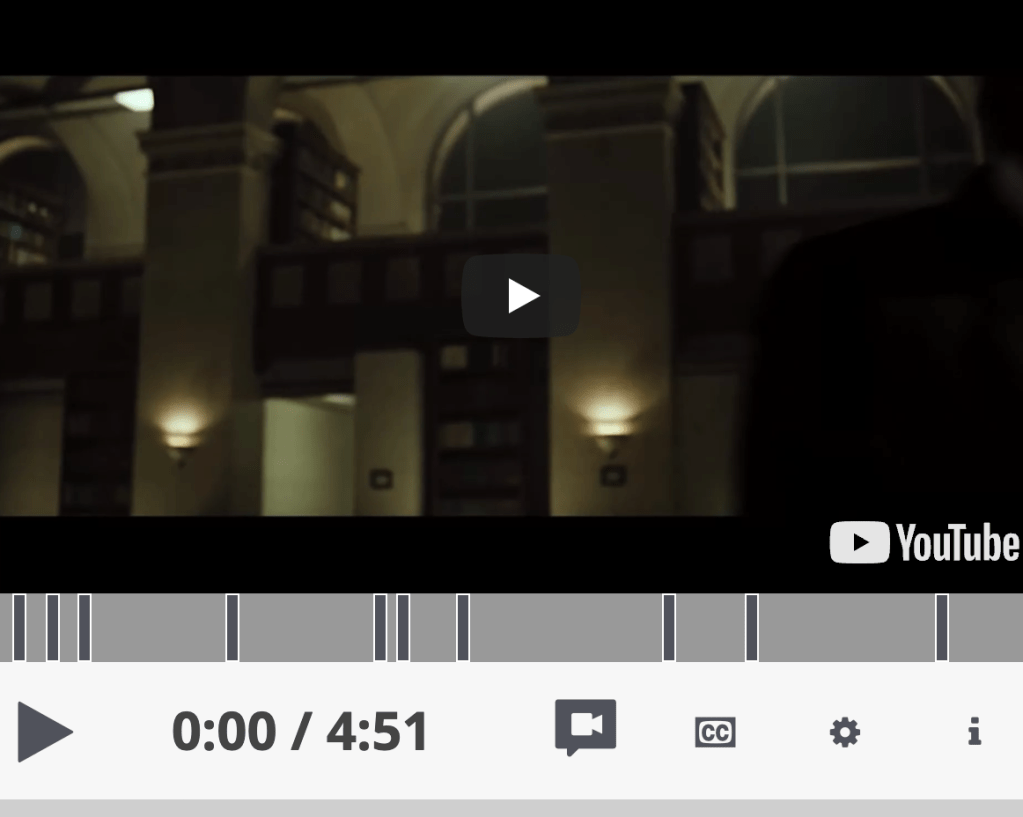 Admittedly, the library sequence is not a particularly noteworthy portion of the film, as it is serves no major symbolic, thematic, or stylistic function, but it does contain a great deal of filmic detail, as most film clips do. Your analyses should consider such detail and select the elements that are most significant (and conducive to your argument).